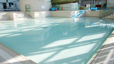 3つのプール及びウォータースライダーを備えた開放感のある屋内プール施設です。